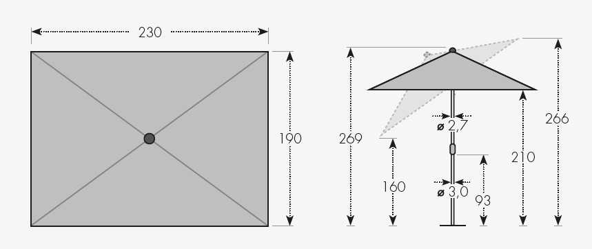 Größe Schirmdach: 230 x 190 cm