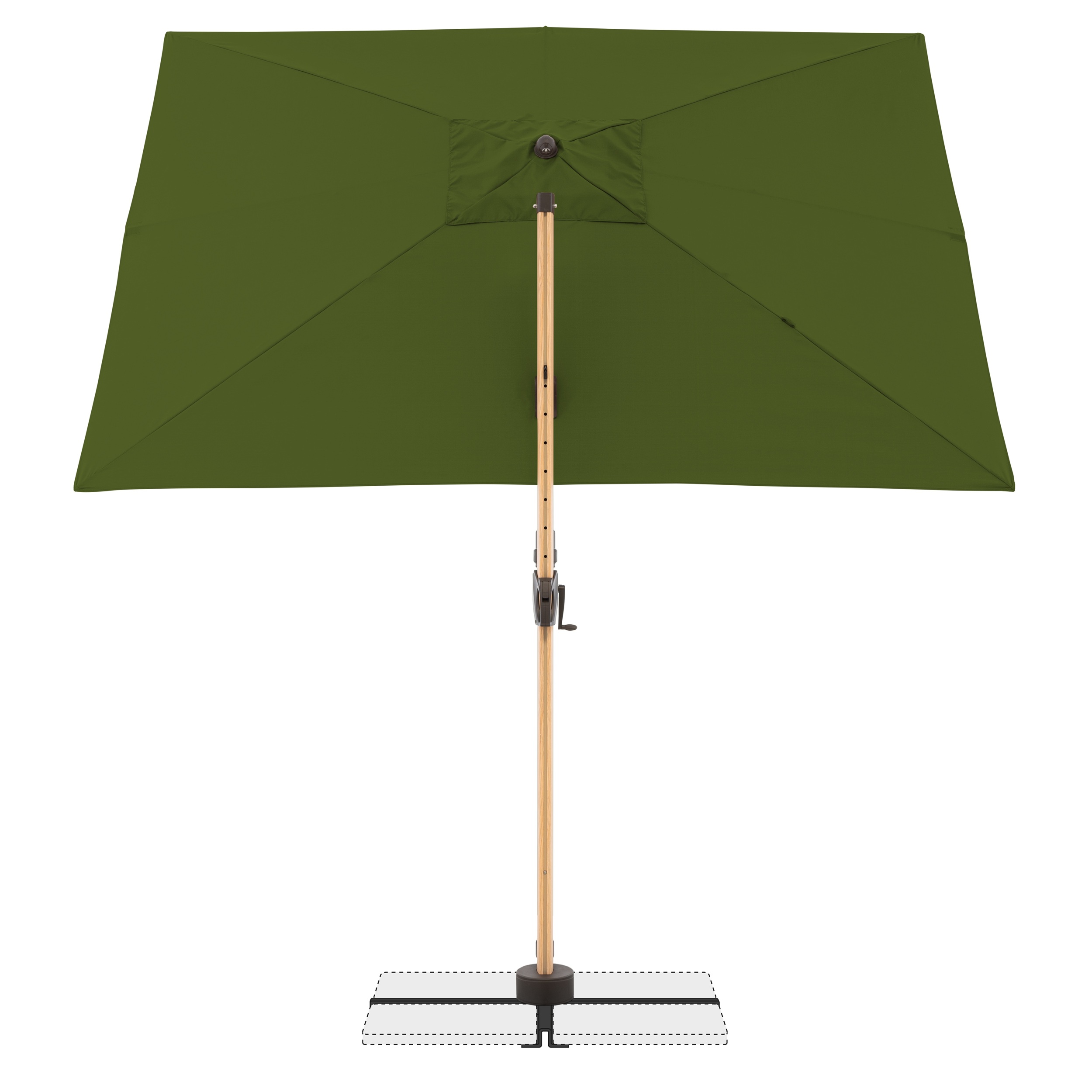 Der Schirm verfügt über eine Schrägstellung, beidseitig axiale Schwenkung des Schirmdaches nach rechts und links, sowie die Möglichkeit, den Mast mit dem Fußraster um 360 Grad zu drehen.