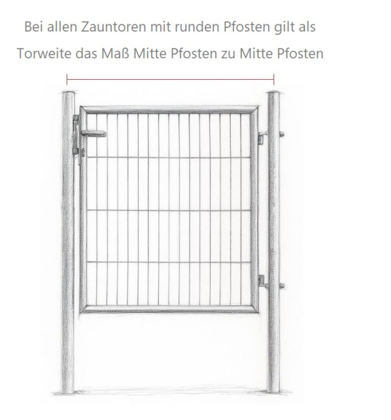 *Bei allen Zauntoren mit runden Pfosten gilt als Torweite das Maß Mitte Pfosten zu Mitte Pfosten