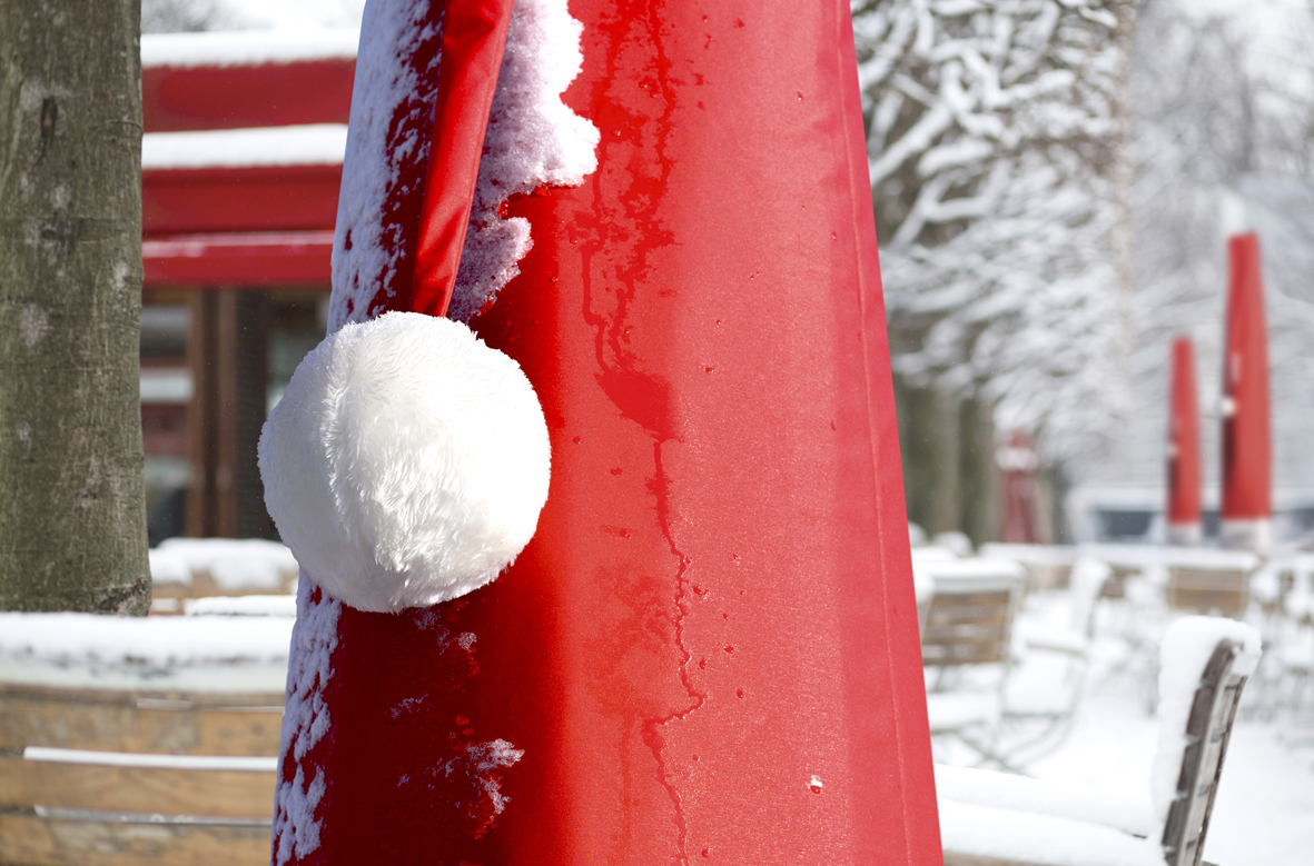 Einfach unsere Nikolaus-Schutzhülle über den Schirm ziehen und schon