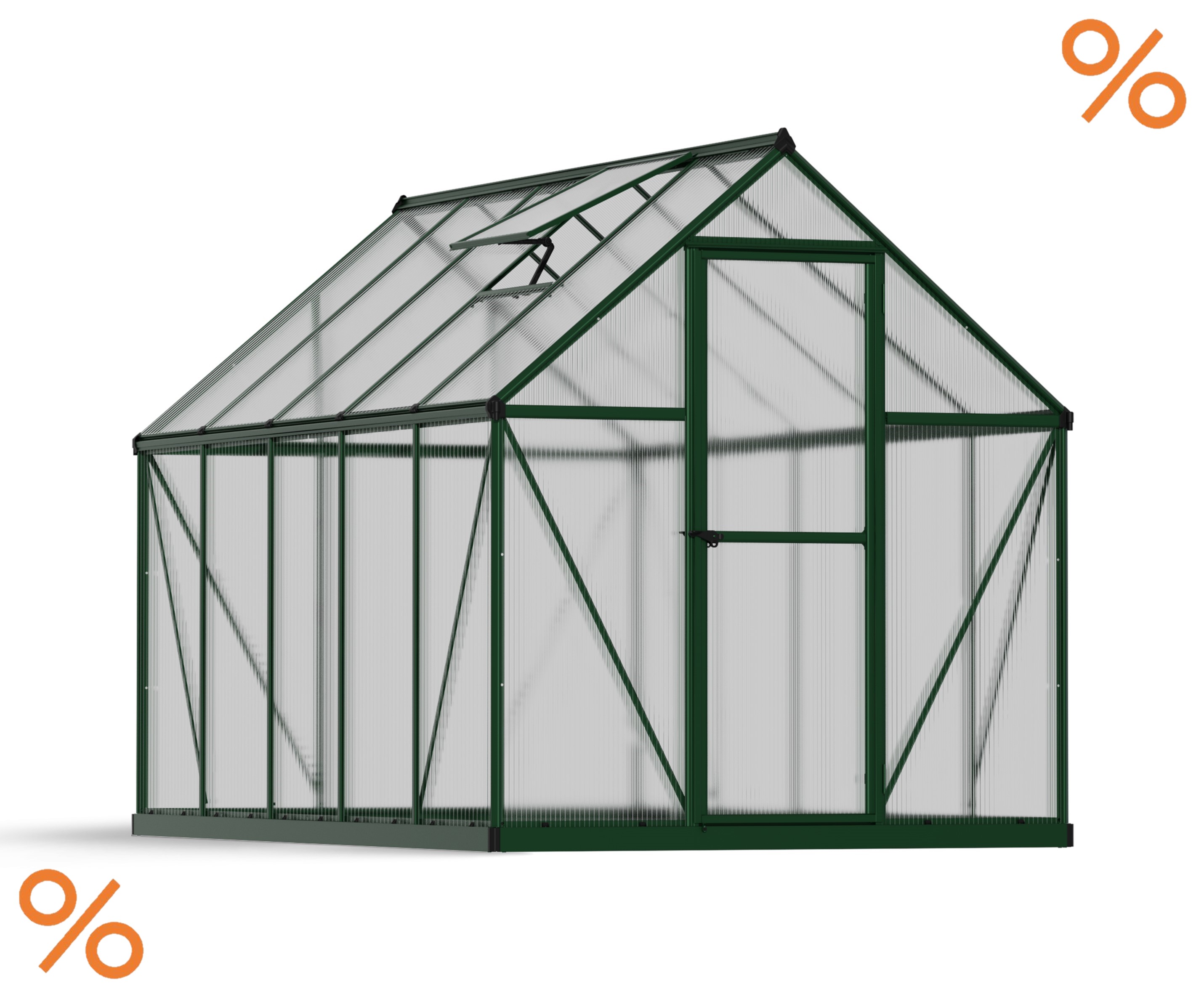 Das Mythos-Gewächshaus ist elegant und praktisch, perfekt entworfen, um in kleinere Gärten zu passen und Ihre Pflanzen vor den Elementen zu schützen, sodass Sie früher mit dem Anbau beginnen und später weiter wachsen können. Es hilft Ihnen, ebene Temperaturen und diffuses Sonnenlicht für empfindliche Pflanzen aufrechtzuerhalten. Es verfügt über praktisch unzerbrechliche, doppelwandige Polycarbonatplatten und einen robusten, rostbeständigen Aluminiumrahmen.