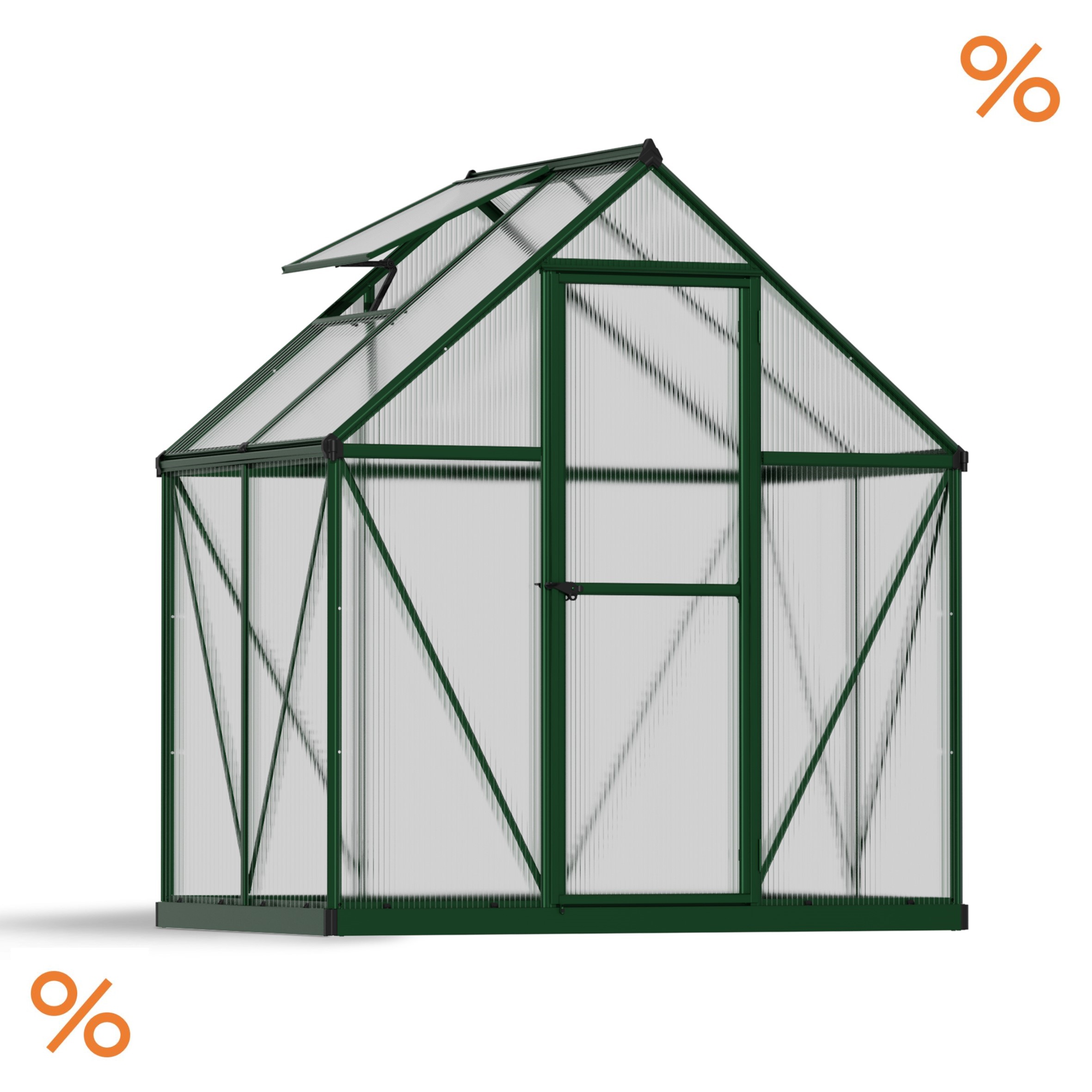 Das Mythos-Gewächshaus ist elegant und praktisch, perfekt entworfen, um in kleinere Gärten zu passen und Ihre Pflanzen vor den Elementen zu schützen, sodass Sie früher mit dem Anbau beginnen und später weiter wachsen können. Es hilft Ihnen, ebene Temperaturen und diffuses Sonnenlicht für empfindliche Pflanzen aufrechtzuerhalten. Es verfügt über praktisch unzerbrechliche, doppelwandige Polycarbonatplatten und einen robusten, rostbeständigen Aluminiumrahmen.
