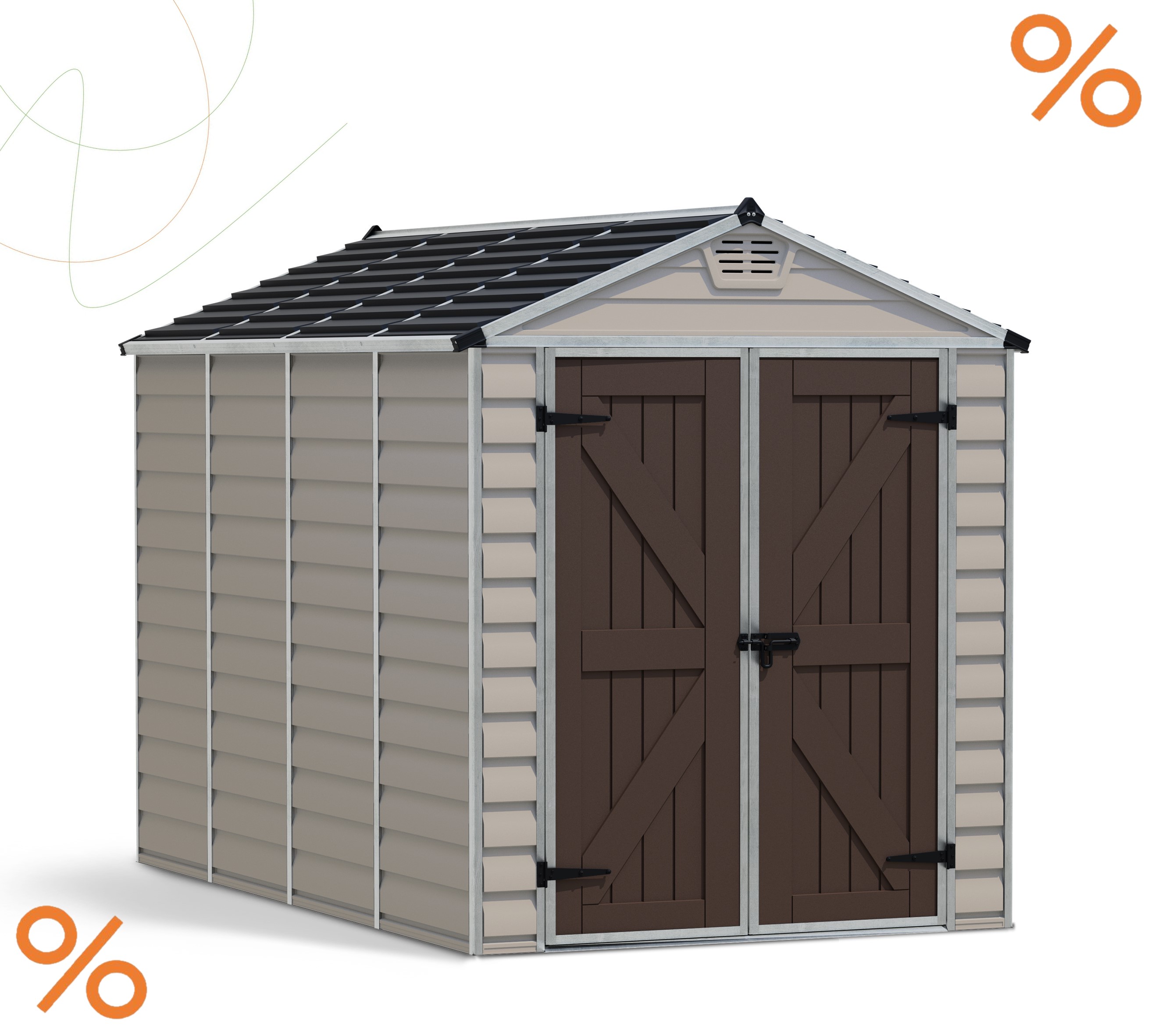 Das neue Palram - Canopia SkyLight™ Gerätehaus ist ideal zum Aufbewahren, Organisieren und Schützen Ihres Outdoor-Lebens. Palram - Canopia SkyLight-Schuppen wurden für eine lange Lebensdauer entwickelt und gebaut, Sie brechen, verbiegen oder verfärben sich nicht und widerstehen extremen Wetterbedingungen wie Hagel und hohen Temperaturen. Hergestellt aus Palram – Canopias praktisch unzerbrechlichem Polycarbonat und verstärktem Aluminiumrahmen, bietet das SkyLight Shed jahrelang wartungsfreien Schutz. Zuerst werden Sie sich vielleicht über die Flexibilität und Dicke der Polycarbonatplatten wundern, aber seien Sie versichert, dass der Schuppen nach dem Zusammenbau starr und langlebig sein wird. Die einzigartigen SkyLight-Polycarbonat-Dachplatten lassen den ganzen Tag über natürliches Sonnenlicht durch und bieten gleichzeitig eine undurchsichtige Außensicht für maximale Privatsphäre. Vordere und hintere Belüftungsöffnungen sind für einen ausreichenden Luftstrom enthalten.