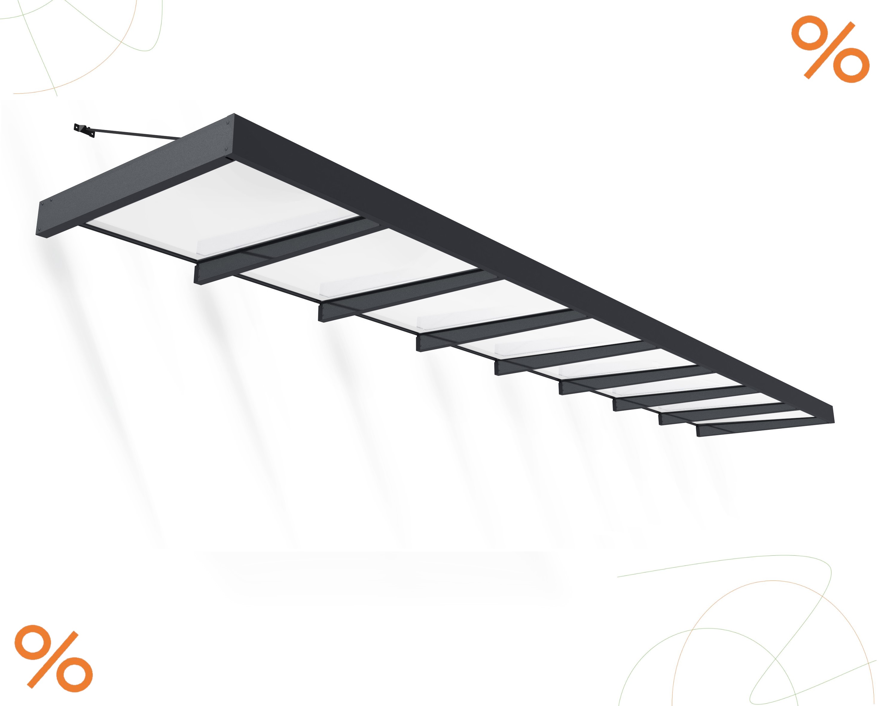 Abdeckung und Rahmen: Die hochschlagfeste 4 mm Acrylplatte ist immun gegen schädliche UV-Strahlen. Langlebige, pulverbeschichtete, verzinkte Stahlhalterungen in grauer Ausführung.