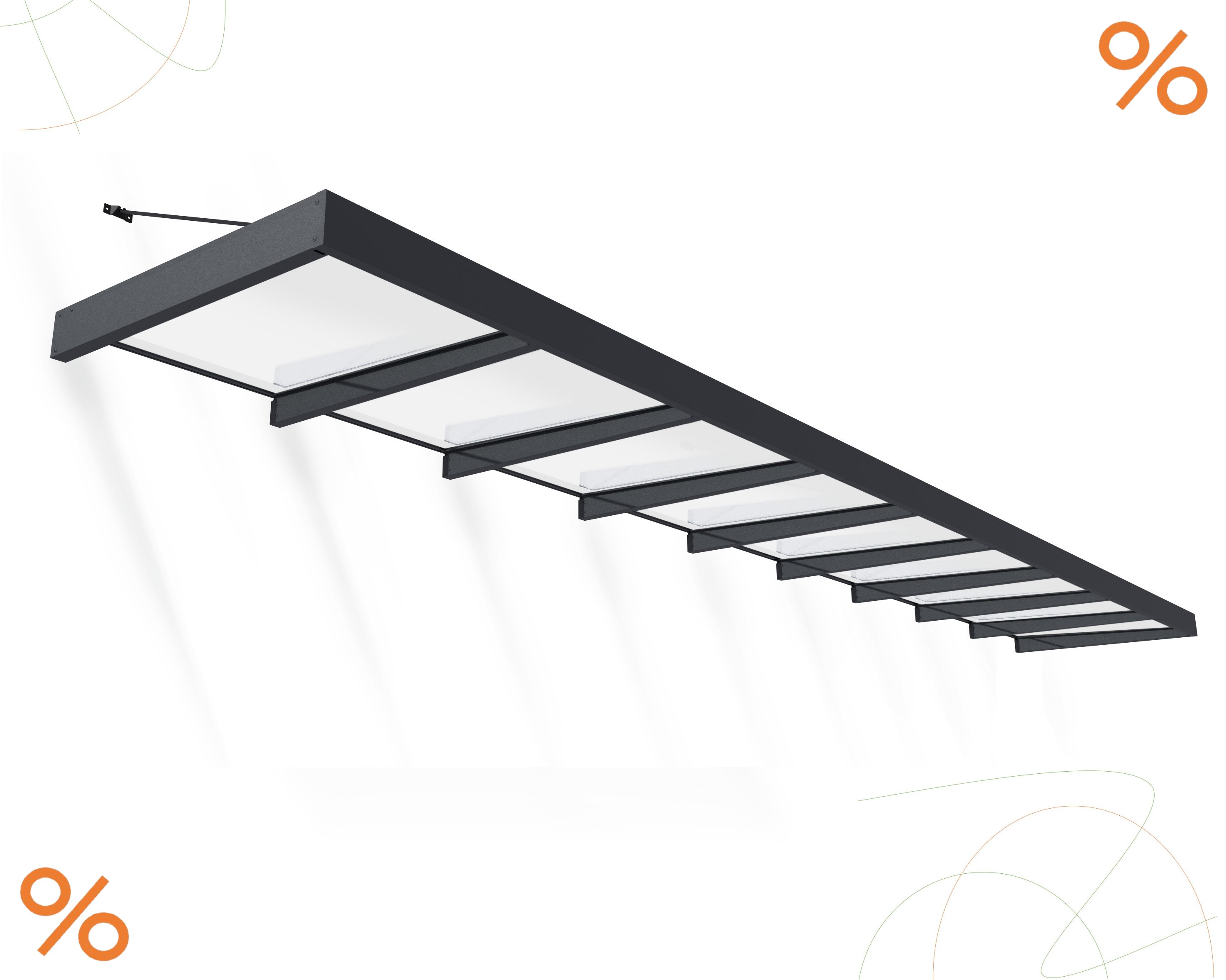 Abdeckung und Rahmen: Die hochschlagfeste 4 mm Acrylplatte ist immun gegen schädliche UV-Strahlen. Langlebige, pulverbeschichtete, verzinkte Stahlhalterungen in grauer Ausführung.