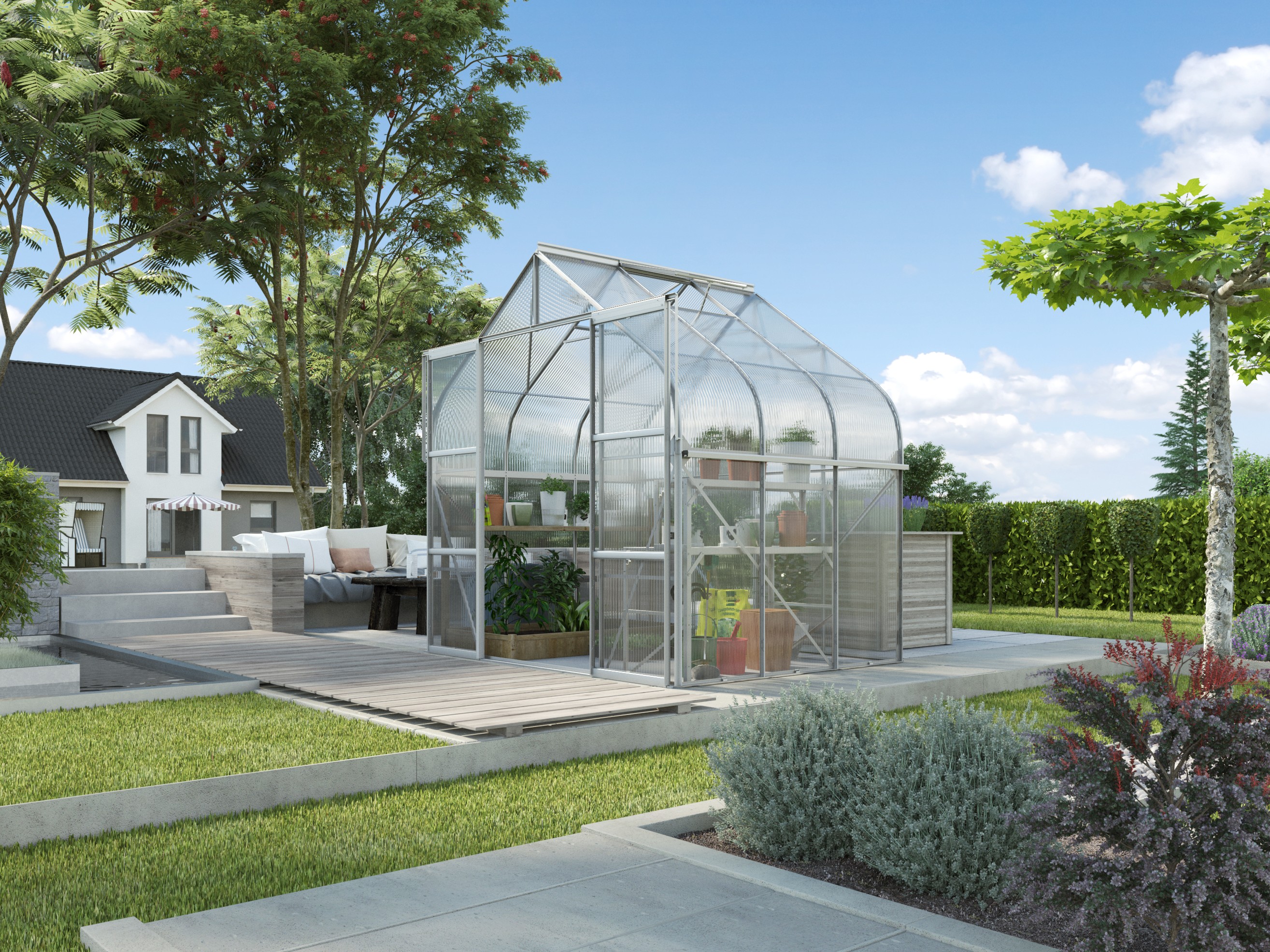 Das elegante und formschöne Aluminiumgewächshaus DIANA ist ein Schmuckstück für jeden Garten.