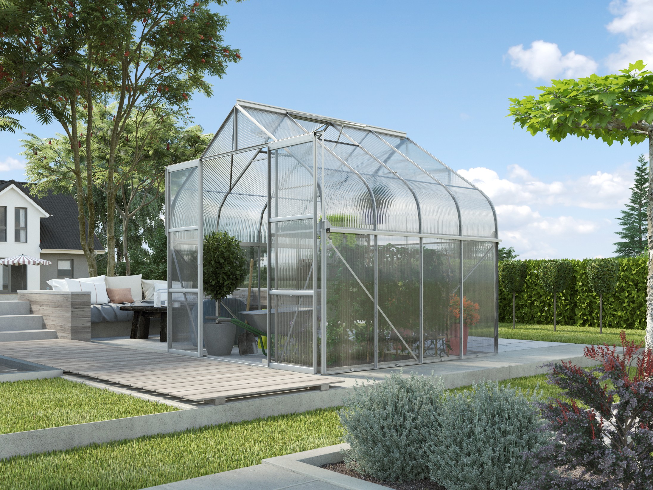 Das elegante und formschöne Aluminiumgewächshaus DIANA ist ein Schmuckstück für jeden Garten.