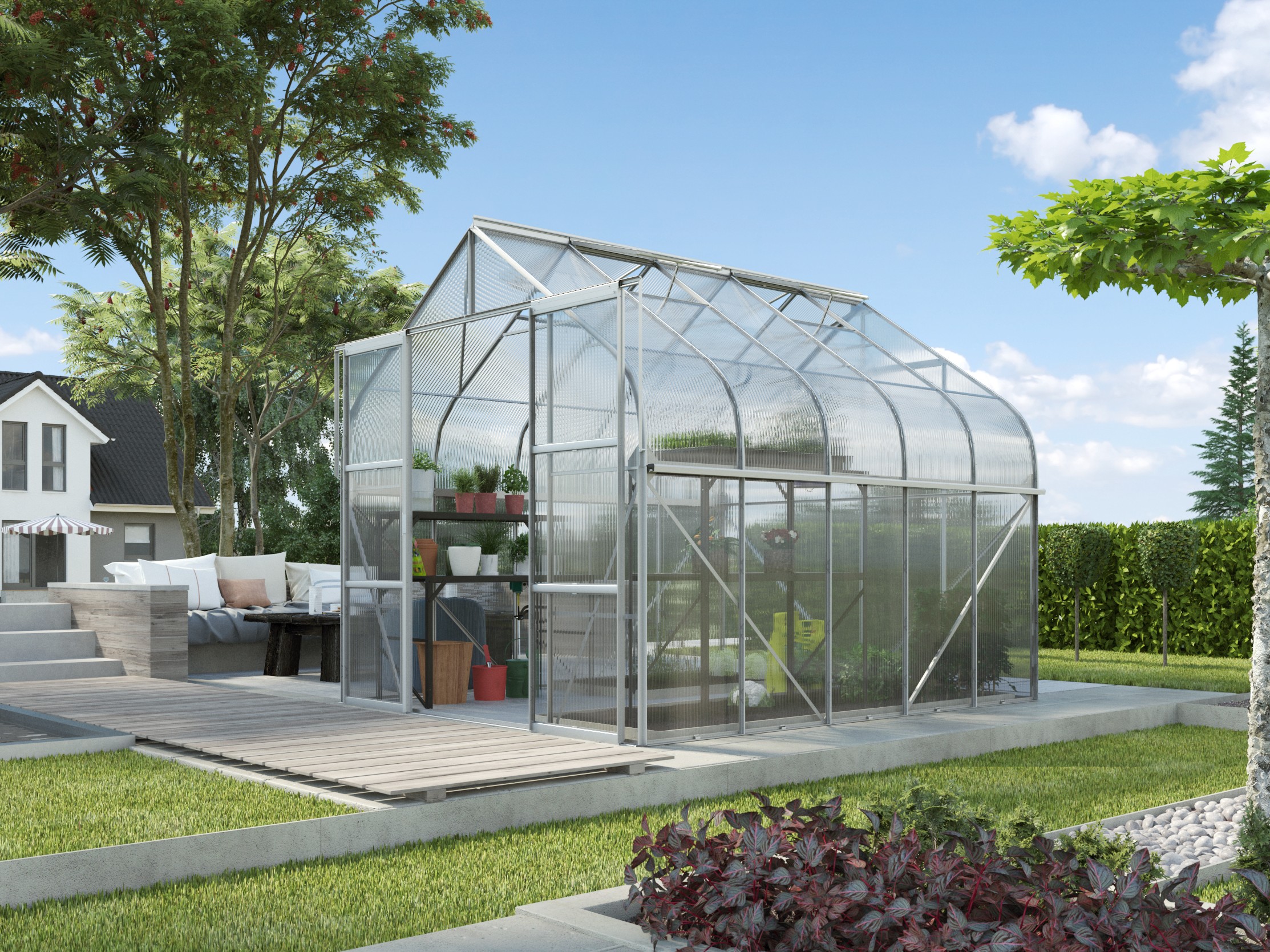 Das elegante und formschöne Aluminiumgewächshaus DIANA ist ein Schmuckstück für jeden Garten.