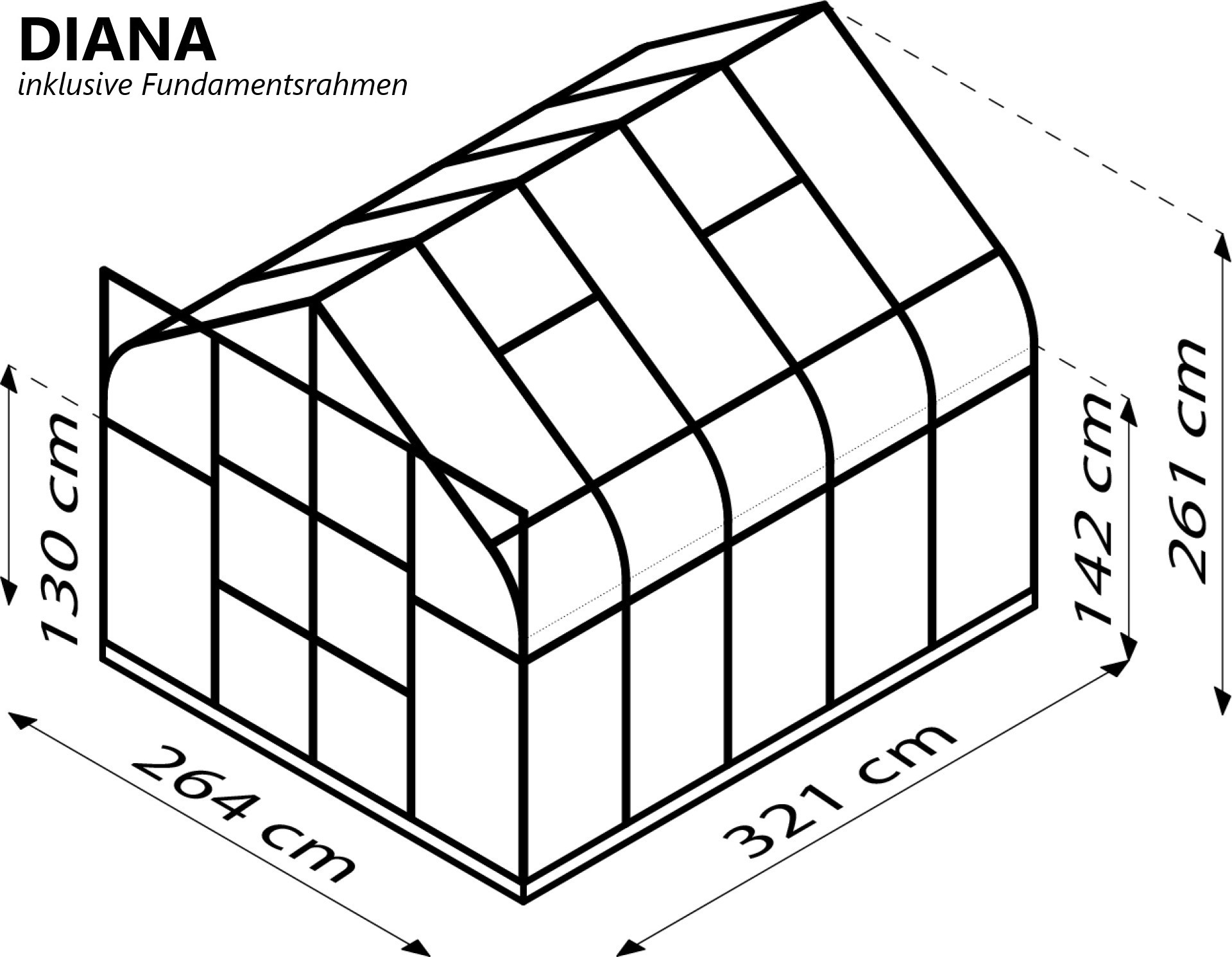 Das elegante und formschöne Aluminiumgewächshaus DIANA ist ein Schmuckstück für jeden Garten.
