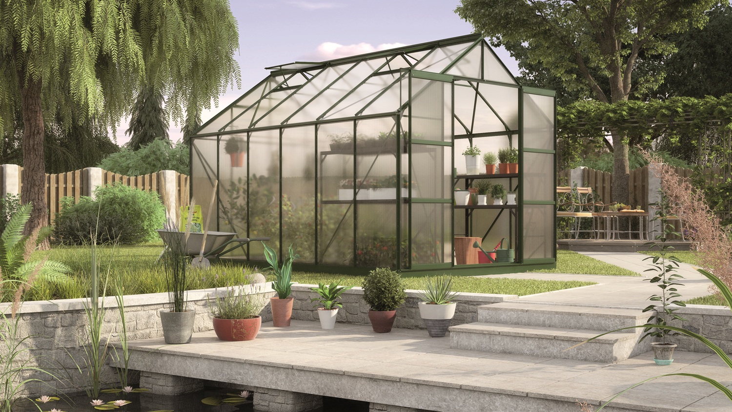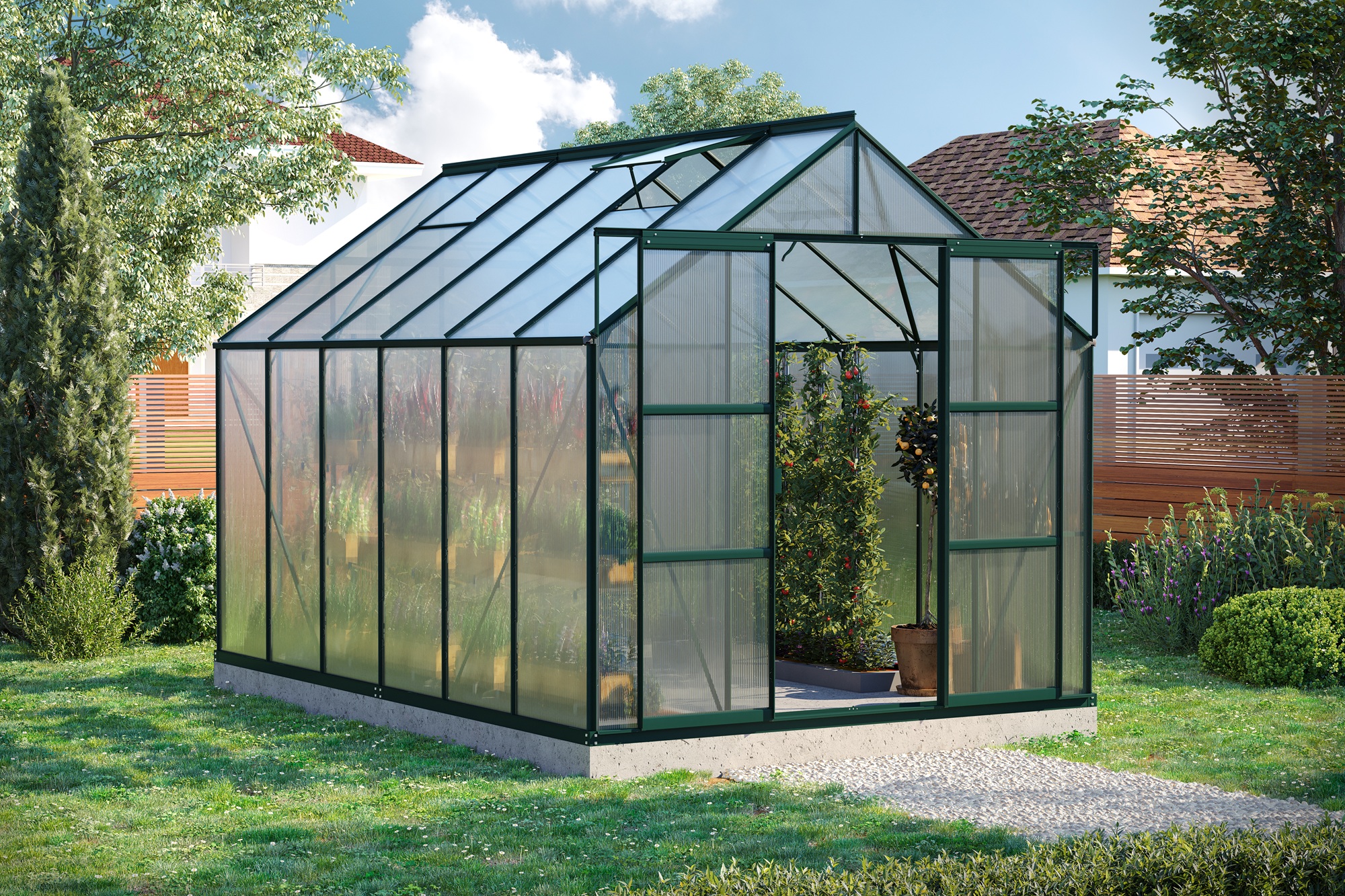 Sicherheitsglas garantiert stattdessen eine hohe Lichtdurchlässigkeit und besticht durch die „klassische“ Glasoptik. An sonnigen, heißen Tagen sollte das Glas jedoch abschattiert werden, um die Pflanzen vor Verbrennung zu schützen.