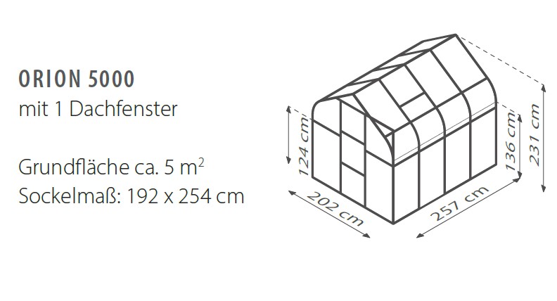 2,31 m hoch und 2,02 m breit bietet es Ihren Pflanzen und Ihren Träumen genug Platz um sich zu entfalten. Dach und Seiten aus kristalklarem Sicherheitsglas (ESG)* lassen viel Licht auf Ihre Pflanzen fallen, die sich so in voller Pracht zeigen. Zum Schutz vor zu intensiver Sonneneinstrahlung ist der Einsatz von Schattiergewebe empfohlen. Am unteren Dachende befinden sich gebogene Scheiben aus klarem Polycarbonat. Durch die Rundung gewinnt das Haus an Seitenhöhe – und bietet so im Vergleich zu seiner kleinen Grundfläche wachsenden Pflanzen und arbeitenden Gärtnern viel Raum.