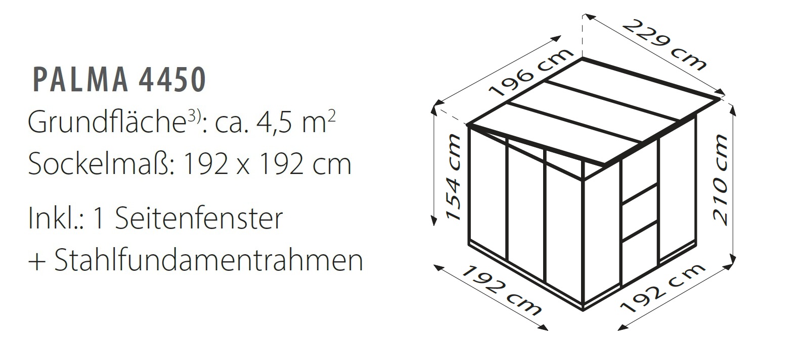 Inklusive: 1 Seitenfenster, Regenrinne mit 2 Regenfallrohre, Fundamentrahmen
