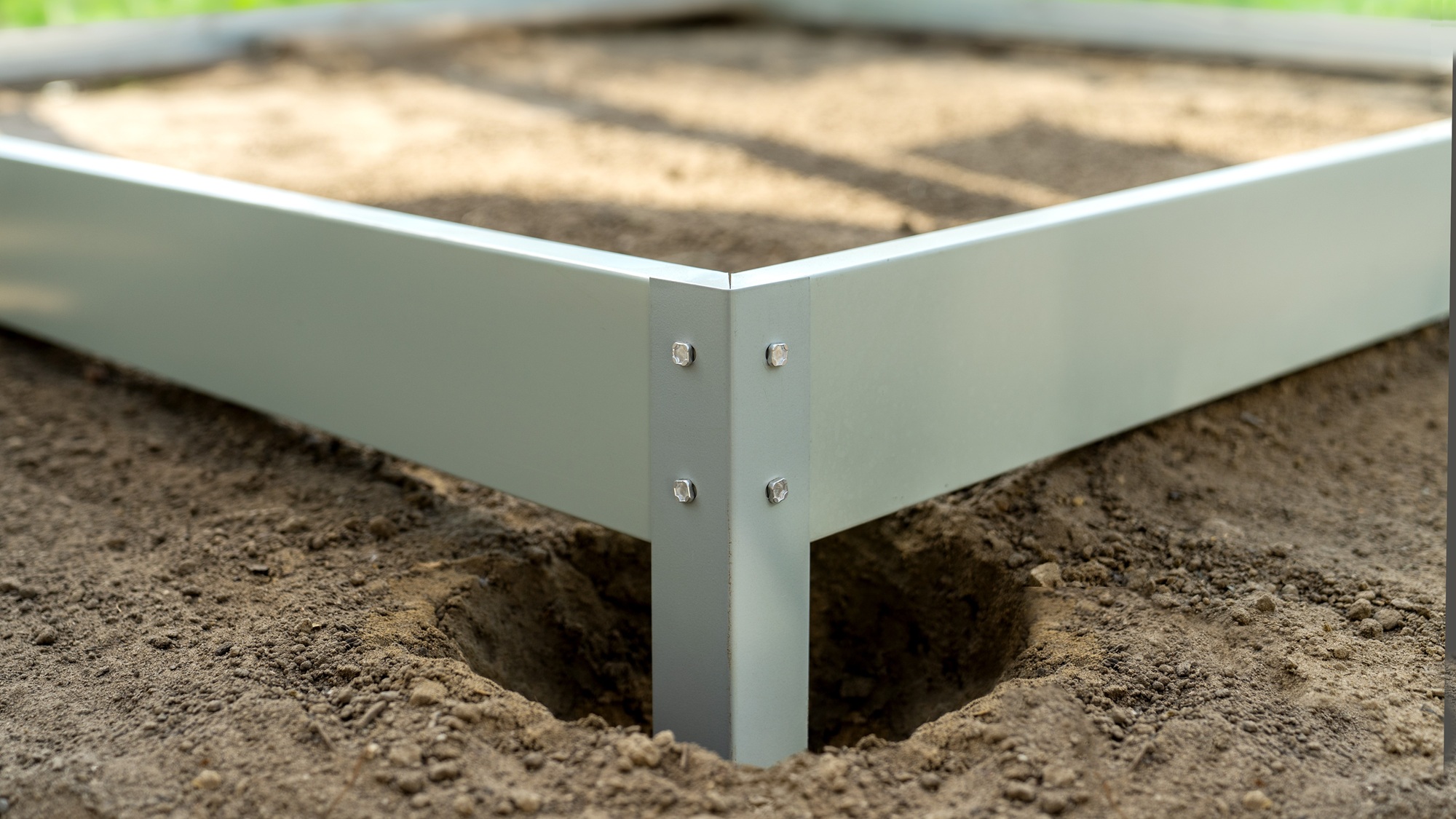 Um einen absolut ebenerdigen und rechtwinkligen Aufbau des Gewächshauses zu gewährleisten, ist ein Fundamentrahmen aus verzinktem und farbbeschichtetem Stahlblech besonders empfehlenswert und hilfreich.