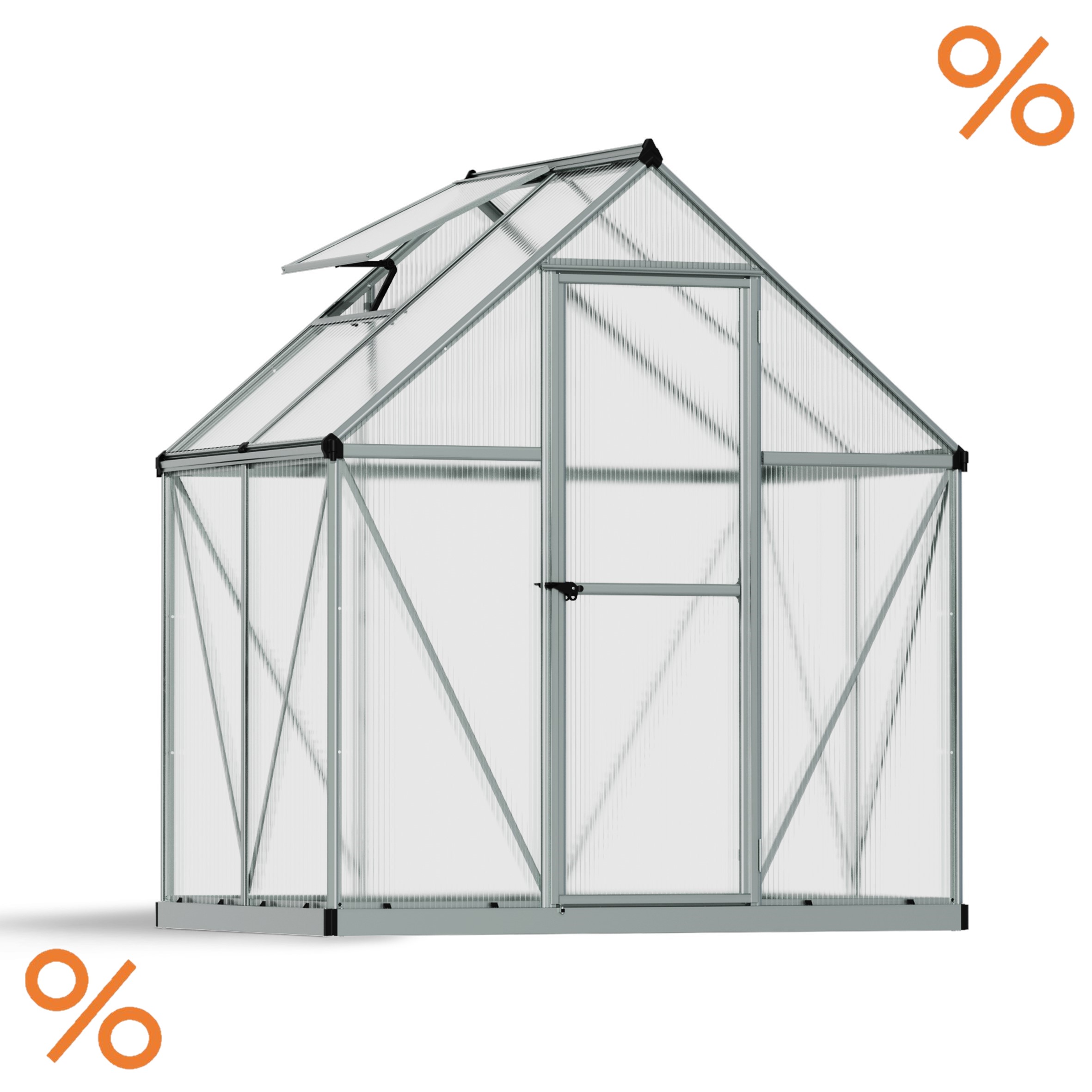 Das Mythos-Gewächshaus ist elegant und praktisch, perfekt entworfen, um in kleinere Gärten zu passen und Ihre Pflanzen vor den Elementen zu schützen, sodass Sie früher mit dem Anbau beginnen und später weiter wachsen können. Es hilft Ihnen, ebene Temperaturen und diffuses Sonnenlicht für empfindliche Pflanzen aufrechtzuerhalten. Es verfügt über praktisch unzerbrechliche, doppelwandige Polycarbonatplatten und einen robusten, rostbeständigen Aluminiumrahmen.